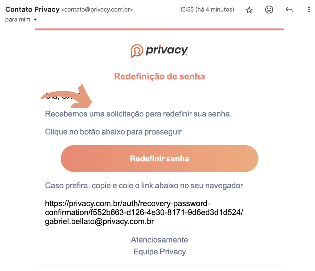 Entra en nuestra página de restablecimiento de contraseña a través del enlace 👉 https://privacy.com.br/v2/auth/recovery-password